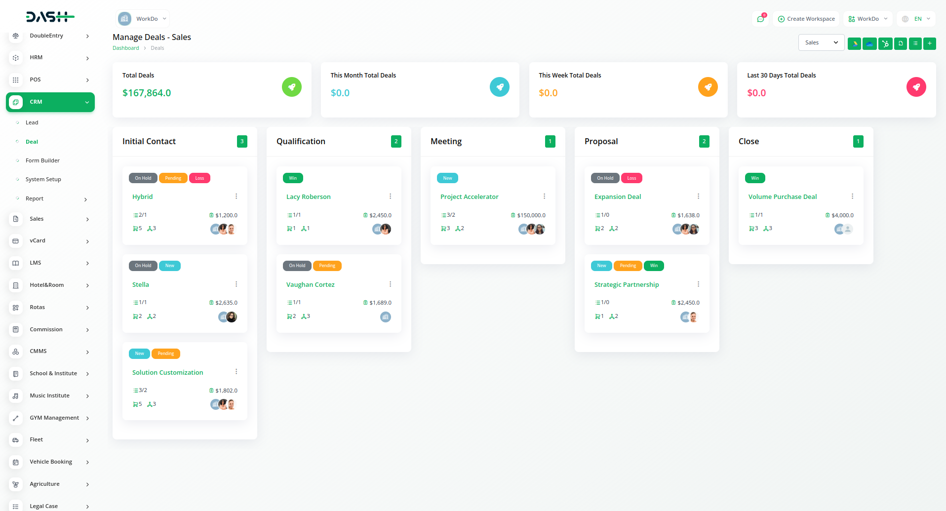 Get an actionable analysis of all your leads, deals, users, invoices, and products - in one interactive dashboard. Create and implement effective business plans, set a maximum number of deals, payment options and do so much more.